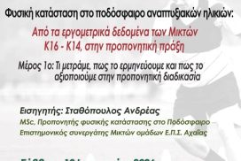 Επιμορφωτική Ημερίδα ΕΠΣ Αχαΐας: Φυσική Κατάσταση και Εργομετρικά Δεδομένα στα Αναπτυξιακά Ποδοσφαιρικά Τμήματα Κ14-Κ16